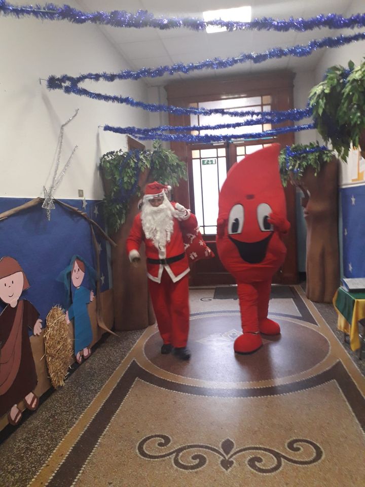 Babbo natale e gocciolina portano gli auguri a tutti i bambini delle scuole materne della città. >
