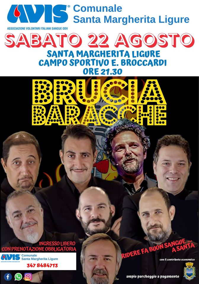 Ridere fa buon sangue..a Santa, torna! Nonostante la situazione delicata dovuta all’emergenza COVID-19, viene organizzata una serata di divertimento al Campo Sportivo E.Broccardi di Santa Margherita con il gruppo di comici genovesi “Bruciabaracche” >