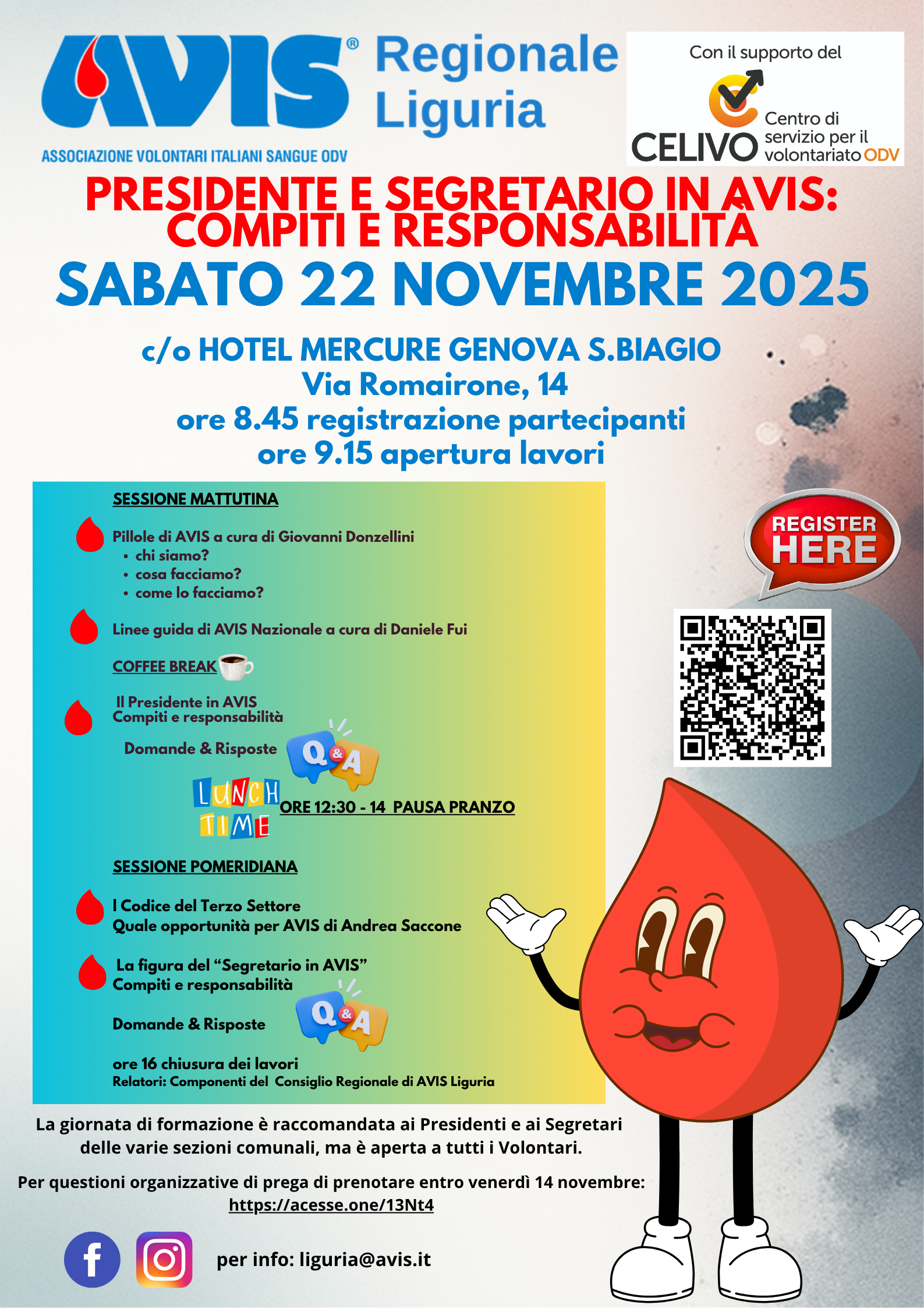 AVIS (Associazione Volontari Italiani del Sangue) è un’associazione privata, senza scopo di lucro, che persegue un fine di interesse pubblico: garantire un’adeguata disponibilità di sangue e dei suoi emocomponenti a tutti i pazienti che ne abbiano necessità, attraverso la promozione del dono, la chiamata dei donatori e in alcuni casi anche la raccolta diretta di sangue, d’intesa con le strutture ospedaliere pubbliche. Fonda la sua attività sui principi della democrazia, della libera partecipazione sociale e sul volontariato, quale elemento centrale e insostituibile di solidarietà umana.